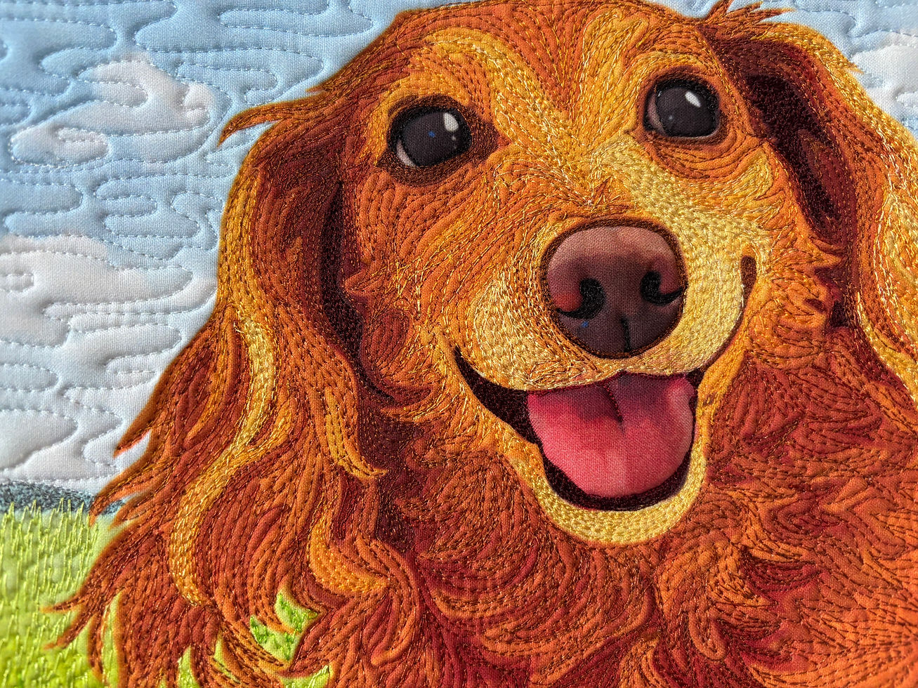 Some might look at this and think it’s a “cheater quilt” because the base image was printed. But I see it differently. I see it as a thoughtful way to manage time and cost while still pouring love into every stitch. The heart of the work is still there. The hours of thread blending are still there. The intention is absolutely there.